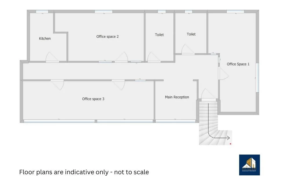 Versatile office space, currently set out with, Main Reception. 3 separate offices with desk space for 6 to 8 people. Seperate male and female toilets and kitchen area. All offices and reception have air conditioning units. Private parking can be found to the rear of the building and on street parking out front. This commercial property also features a video security entry system and an electronic shutter.